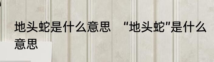 简介地头蛇是什么意思?地头蛇指的是地势低洼的地方,站立时头会碰到墙壁或地面。它也可以指某人在生活、学习或工作中陷入极度落后的境地,无法