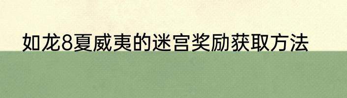 如龙8夏威夷的迷宫奖励获取方法