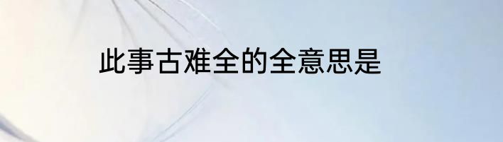 此事古难全的全意思是?