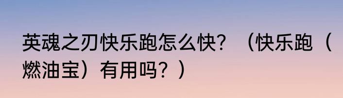 提及英魂之刃快乐跑怎么快?(快乐跑(燃油宝)有用吗?)的相关内容,许多人不太了解,来看看小臣的介绍吧!