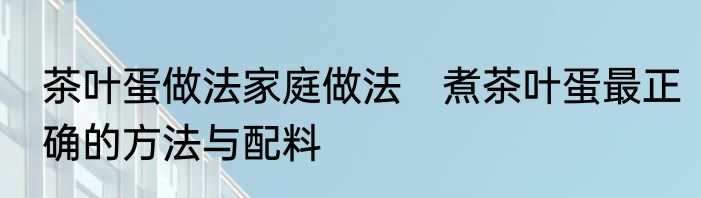 茶叶蛋做法家庭做法?