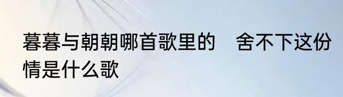 暮暮与朝朝哪首歌里的 舍不下这份情是什么歌