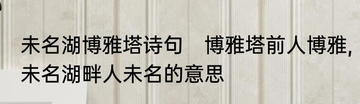 未名湖博雅塔诗句 博雅塔前人博雅,未名湖畔人未名的意思