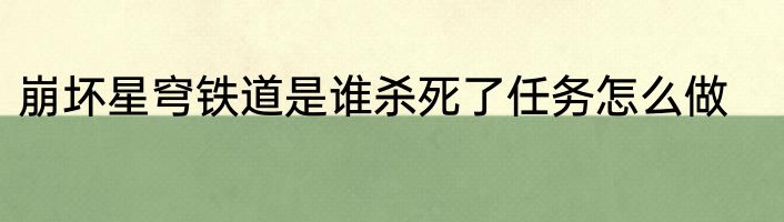 大家好,小太来为大家讲解下崩坏星穹铁道是谁杀死了任务怎么做,现在让我们一起来看看吧!