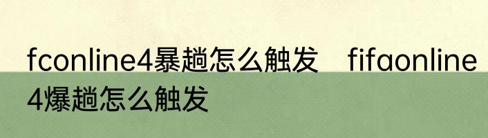 fconline4暴趟怎么触发 fifaonline4爆趟怎么触发