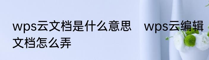 wps云文档是什么意思 wps云编辑文档怎么弄