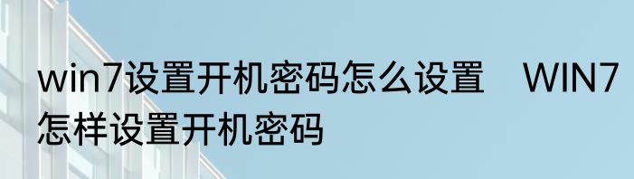 win7设置开机密码怎么设置 WIN7怎样设置开机密码