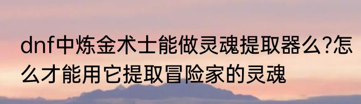 dnf中炼金术士能做灵魂提取器么?怎么才能用它提取冒险家的灵魂?