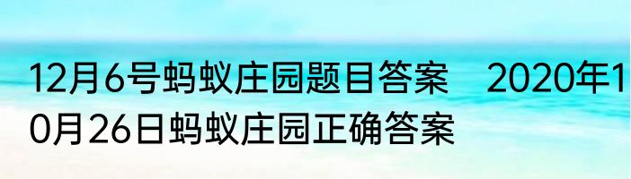 12月6号蚂蚁庄园题目答案 2020年10月26日蚂蚁庄园正确答案