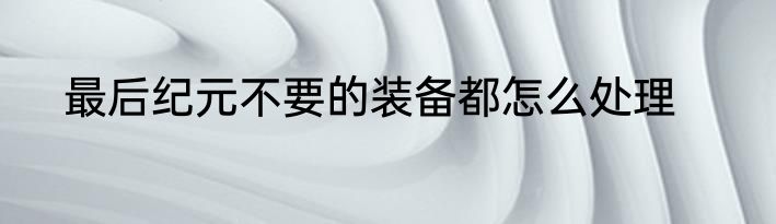 最后纪元不要的装备都怎么处理