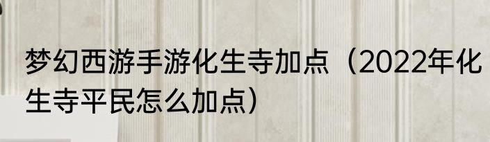 梦幻西游手游化生寺加点(2022年化生寺平民怎么加点)