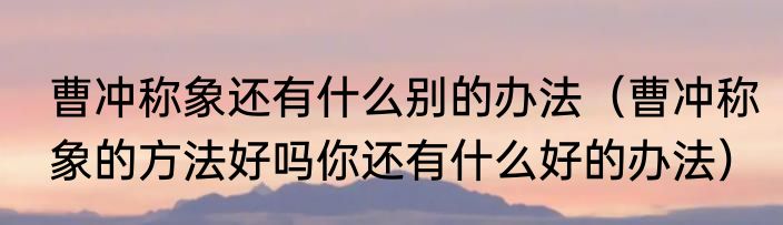 曹冲称象还有什么别的办法(曹冲称象的方法好吗你还有什么好的办法)