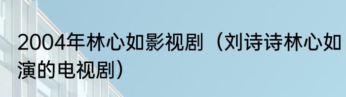 2004年林心如影视剧(刘诗诗林心如演的电视剧)