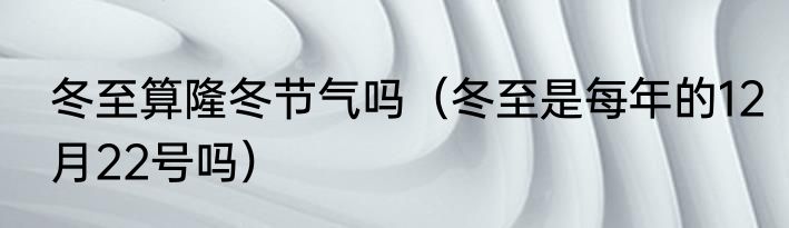 冬至算隆冬节气吗(冬至是每年的12月22号吗)