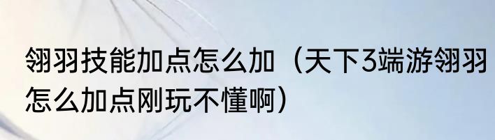 翎羽技能加点怎么加(天下3端游翎羽怎么加点刚玩不懂啊)