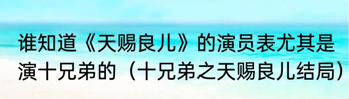 谁知道《天赐良儿》的演员表尤其是演十兄弟的(十兄弟之天赐良儿结局)