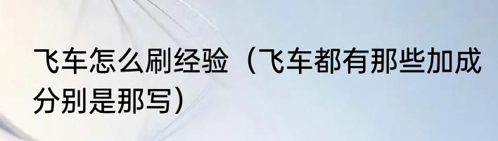 飞车怎么刷经验(飞车都有那些加成分别是那写)