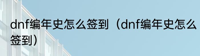 dnf编年史怎么签到(dnf编年史怎么签到)