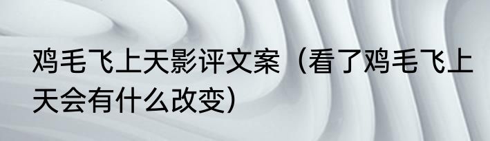 鸡毛飞上天影评文案(看了鸡毛飞上天会有什么改变)