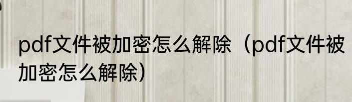 pdf文件被加密怎么解除(pdf文件被加密怎么解除)