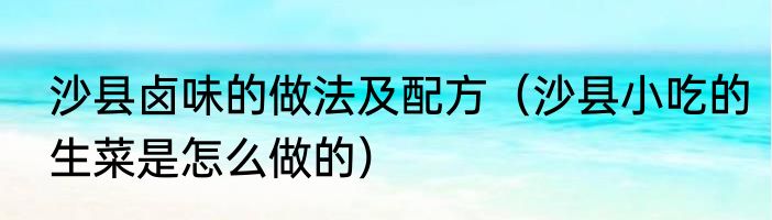 沙县卤味的做法及配方(沙县小吃的生菜是怎么做的)