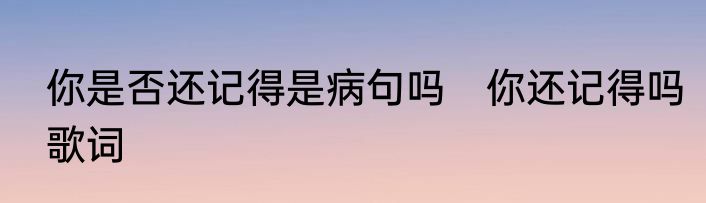 你是否还记得是病句吗 你还记得吗歌词