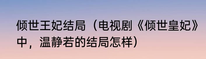 倾世王妃结局(电视剧《倾世皇妃》中,温静若的结局怎样)