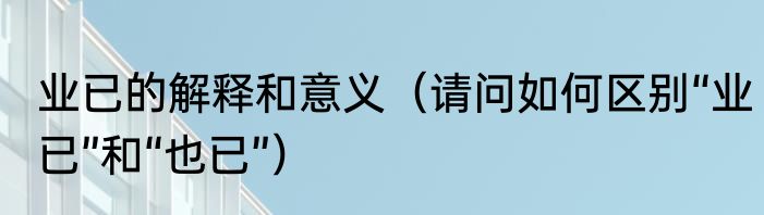 业已的解释和意义(请问如何区别“业已”和“也已”)