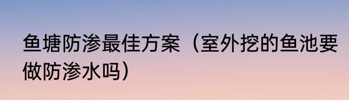 鱼塘防渗最佳方案(室外挖的鱼池要做防渗水吗)