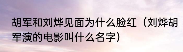 胡军和刘烨见面为什么脸红(刘烨胡军演的电影叫什么名字)
