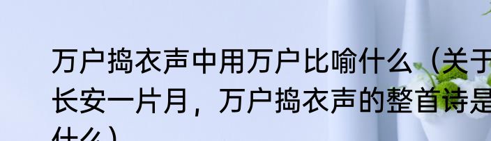 万户捣衣声中用万户比喻什么(关于长安一片月,万户捣衣声的整首诗是什么)