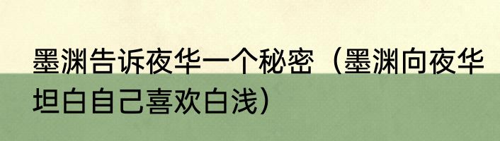 墨渊告诉夜华一个秘密(墨渊向夜华坦白自己喜欢白浅)