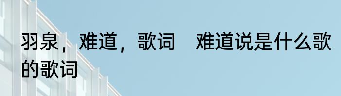 羽泉,难道,歌词 难道说是什么歌的歌词