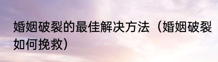 婚姻破裂的最佳解决方法(婚姻破裂如何挽救)