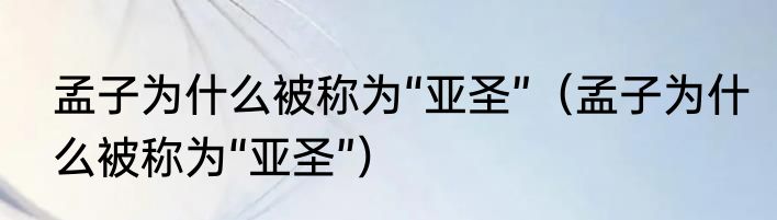 孟子为什么被称为“亚圣”(孟子为什么被称为“亚圣”)