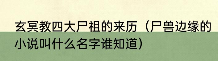 玄冥教四大尸祖的来历(尸兽边缘的小说叫什么名字谁知道)