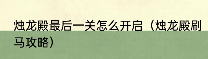 烛龙殿最后一关怎么开启(烛龙殿刷马攻略)