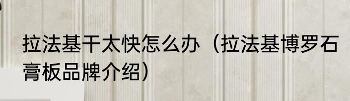 拉法基干太快怎么办(拉法基博罗石膏板品牌介绍)