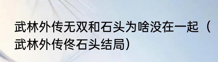 武林外传无双和石头为啥没在一起?