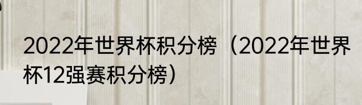 2022年世界杯积分榜(2022年世界杯12强赛积分榜)