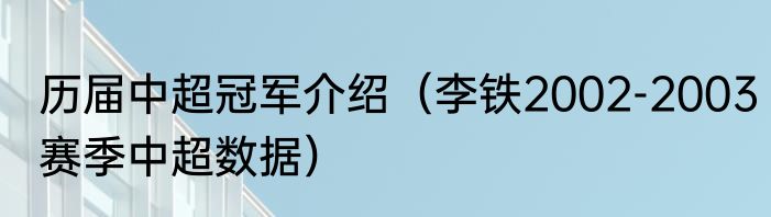 历届中超冠军介绍(李铁2002-2003赛季中超数据)