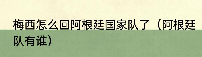 梅西怎么回阿根廷国家队了?