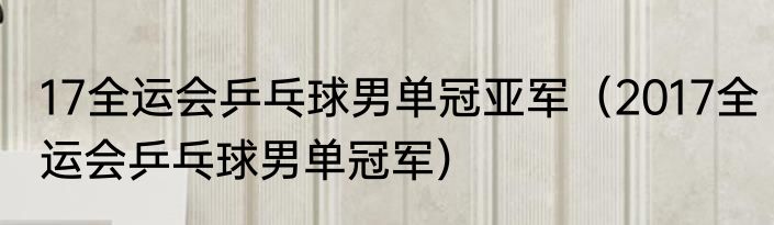 17全运会乒乓球男单冠亚军(2017全运会乒乓球男单冠军)
