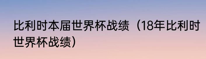 比利时本届世界杯战绩(18年比利时世界杯战绩)