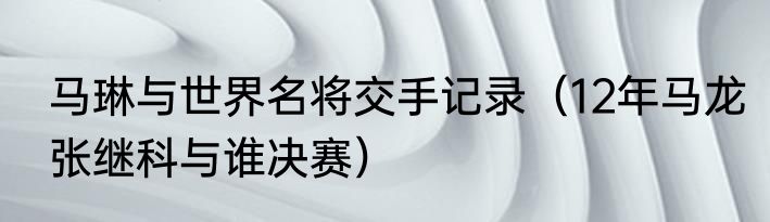 马琳与世界名将交手记录(12年马龙张继科与谁决赛)