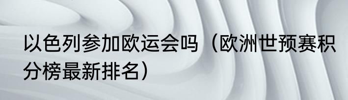 以色列参加欧运会吗(欧洲世预赛积分榜最新排名)