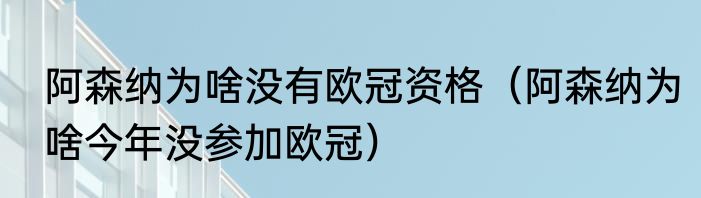 阿森纳为啥没有欧冠资格(阿森纳为啥今年没参加欧冠)