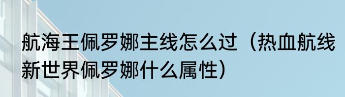 航海王佩罗娜主线怎么过(热血航线新世界佩罗娜什么属性)