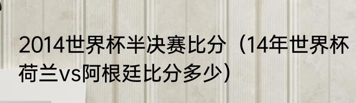 2014世界杯半决赛比分(14年世界杯荷兰vs阿根廷比分多少)
