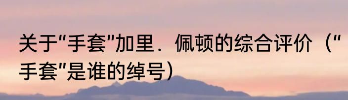 关于“手套”加里.佩顿的综合评价(“手套”是谁的绰号)